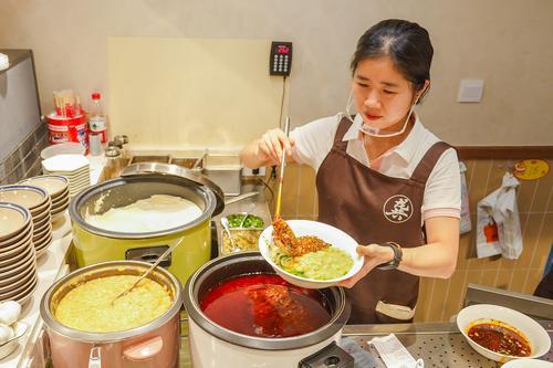 ▲2025年10月11日,渝中区,龚大娃豆花面,一碗碗热气腾腾的面条出餐。记者 李雨恒 摄