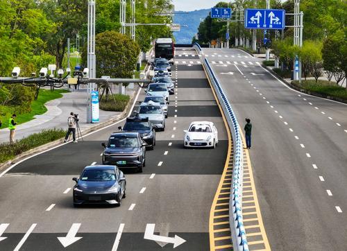 ▲10月23日,重庆高新区金凤城市中心,15家中外车企的车辆行驶在道路上,进行动态演示。(资料图片) 首席记者 龙帆 摄