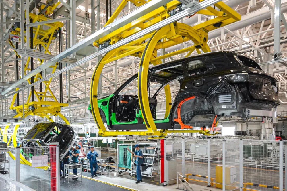 ▲11月4日,两江新区赛力斯超级工厂,车身被自动化设备吊入总装线。记者 李雨恒 摄/视觉重庆