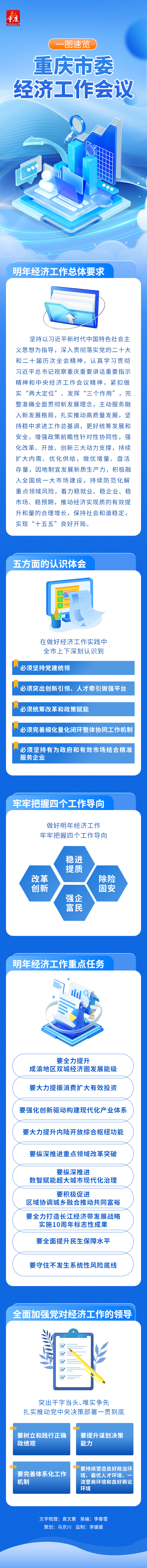 坚持以习近平新时代中国特色社会主义思想为指导,深入贯彻落实党的二十大和二十届历次全会精神,认真学习贯彻总书记视察重庆重要讲话重要指示精神和中央经济工作会议精神,紧扣做实“两大定位”、发挥“三个作用”,完整准确全面贯彻新发展理念,主动服务融入新发展格局,扎实推动高质量发展,坚持稳中求进工作总基调,更好统筹发展和安全、发展和化债,增强政策前瞻性针对性协同性,强化改革、开放、创新三大动力支撑,持续扩大内需、优化供给,做优增量、盘活存量,因地制宜发展新质生产力,积极融入全国统一大市场建设,持续防范化解重点领域风险,着力稳就业、稳企业、稳市场、稳预期,推动经济实现质的有效提升和量的合理增长,保持社会和谐稳定,实现“十五五”良好开局。