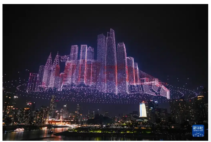 自去年4月起,每逢周六与节假日,重庆主城两江四岸核心区常态化上演的“新韵重庆”无人机灯光秀,已成为重庆的一张文化新名片,吸引了广泛关注。