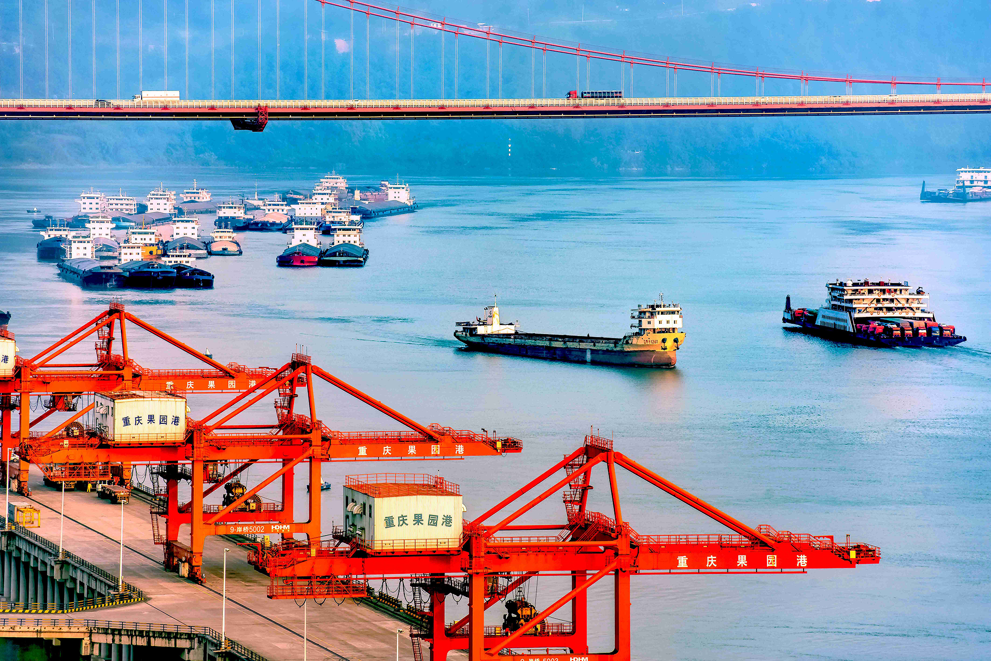 在长江重庆段,果园港、珞璜港、新田港、龙头港、黄磏港等依江而立,共同构建起内陆地区少有的港口集群。它们既是水运枢纽,更是开放门户,托举起重庆不断提升的开放能级。