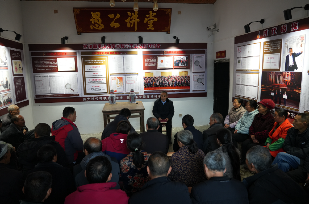 ▲毛相林在“愚公讲堂”向村民传达全国两会精神。(资料图片)受访者供图