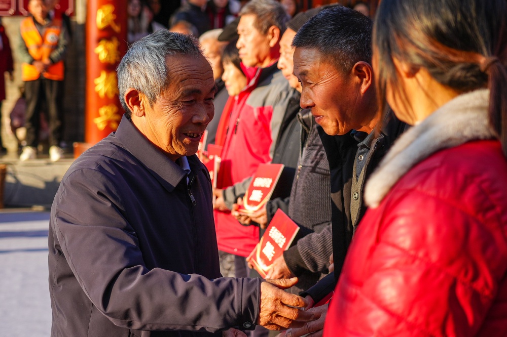 ▲2026年下庄“村晚”活动现场,毛相林为村民发放助学金、慰问金。记者 尹诗语 摄/视觉重庆