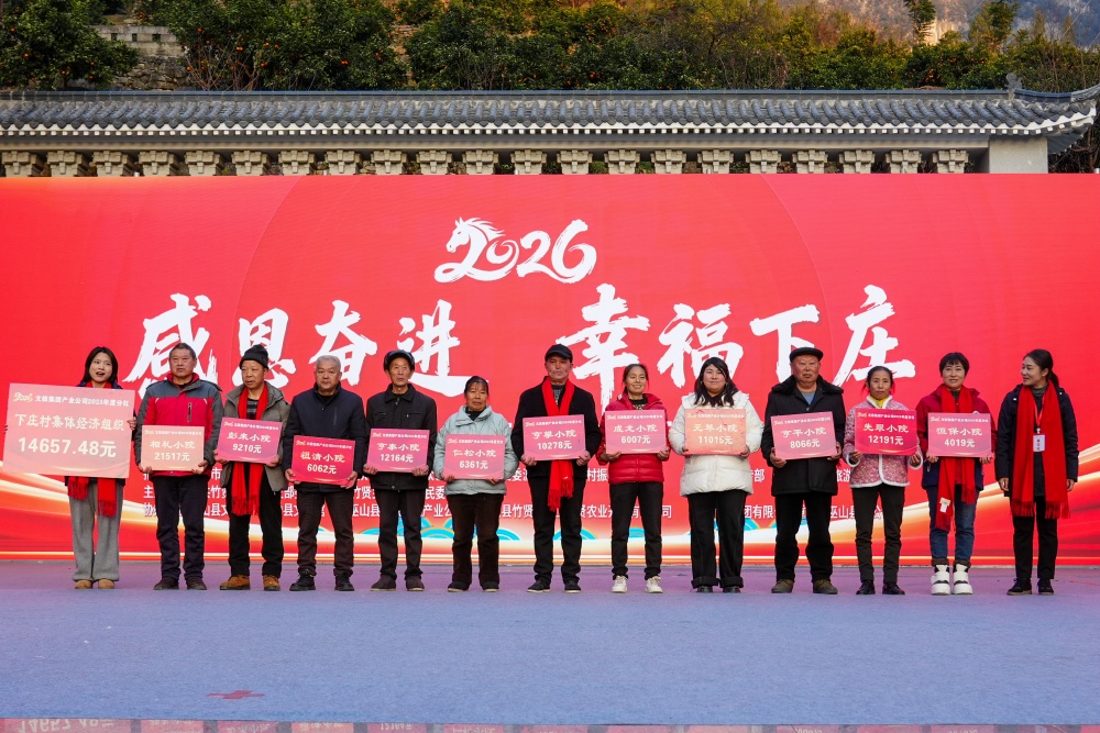 ▲2026年1月6日,下庄村民宿2025年四季度分红仪式上,11家民宿业主共获得分红10万余元。记者 尹诗语 摄/视觉重庆