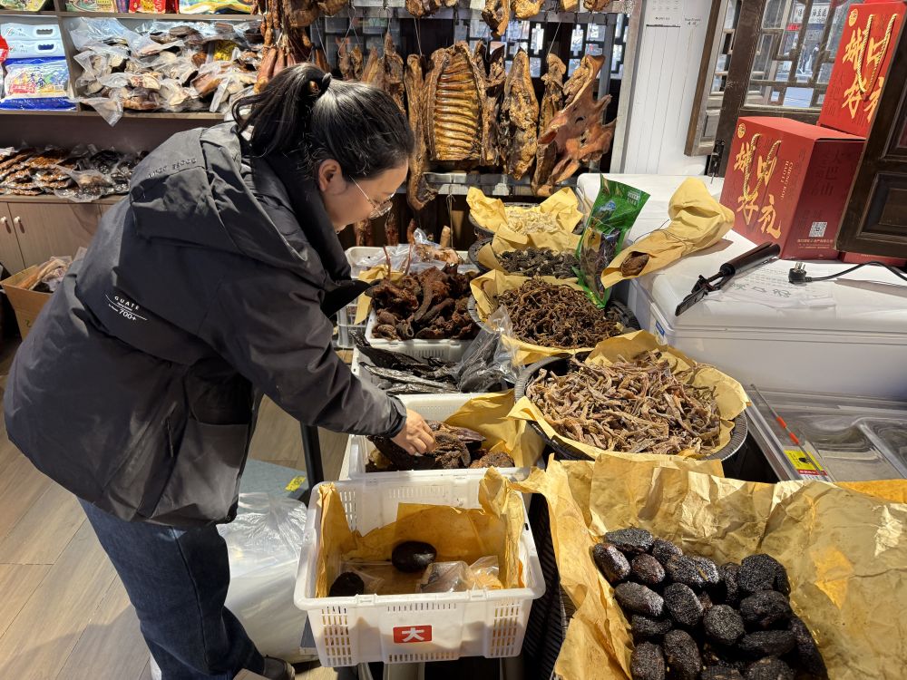 位于重庆城口的“城口好礼”店铺内,胥远燕正在整理土特产。新华社记者 李晓婷 摄